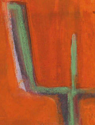 …assoziationen zu düften von weihnachtsgebäck und gewürzen wie sternanis, zimt, orangenblüten, und nelken werden geweckt. der orangerote farbraum erinnert an patina oder rost, ähnlich, wie sie in der architektur verwendung finden. die stark bearbeitete, warme fläche umhüllt die 4 mit einem schützenden und geborgenheit bietenden raum. schicht um schicht, übereinander gelegt, beginnt dieser zu atmen, zu klingen und zu leben. die türkisgrüne 4 scheint sich in diesem farbklang organisch zu bewegen, öffnet sich nach oben hin und will weiterwachsen. auf diesem boden kann die 4 gesunde wurzeln schlagen, sich verankern und zu einer kräftigen pflanze oder einem prächtigen baum gedeihen…sandra lehnis, www.sandralehnis.comWeihnachtskarte 2001