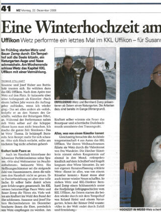 "Die Vier symbolisiert die Teile, Qualitäten und Aspekte des Einen."(C.G. Jung)Der 4 begegnen wir täglich. Schon beim Aufstehen haben wir eine der 4 Tageszeiten, Morgen. Wir sehen nach dem Wetter und schauen in eine der 4 Himmelsrichtungen; ob wir wohl die Sonne sehen? Je nachdem, welchem der 4 Temperamente wir angehören, reagieren wir auf die Wetterlage. Wir richten uns in den eigenen 4 Wänden gemütlich ein oder wir verlassen sie, um an die Arbeit zu gehen. Das Quadrat (das Umgrenztsein) ist Symbol für Haus und Feld und das eigene Wirken. Ich habe die Karte auf "Hüslipapier" (das Quadrat), für "Hüslibauer" (die Umgrenzer) gezeichnet und der Architektengemeinschaft 4 die Reverenz erwiesen.Emmy Wacker, Künstlerin, UerkeimWeihnachtskarte 2002