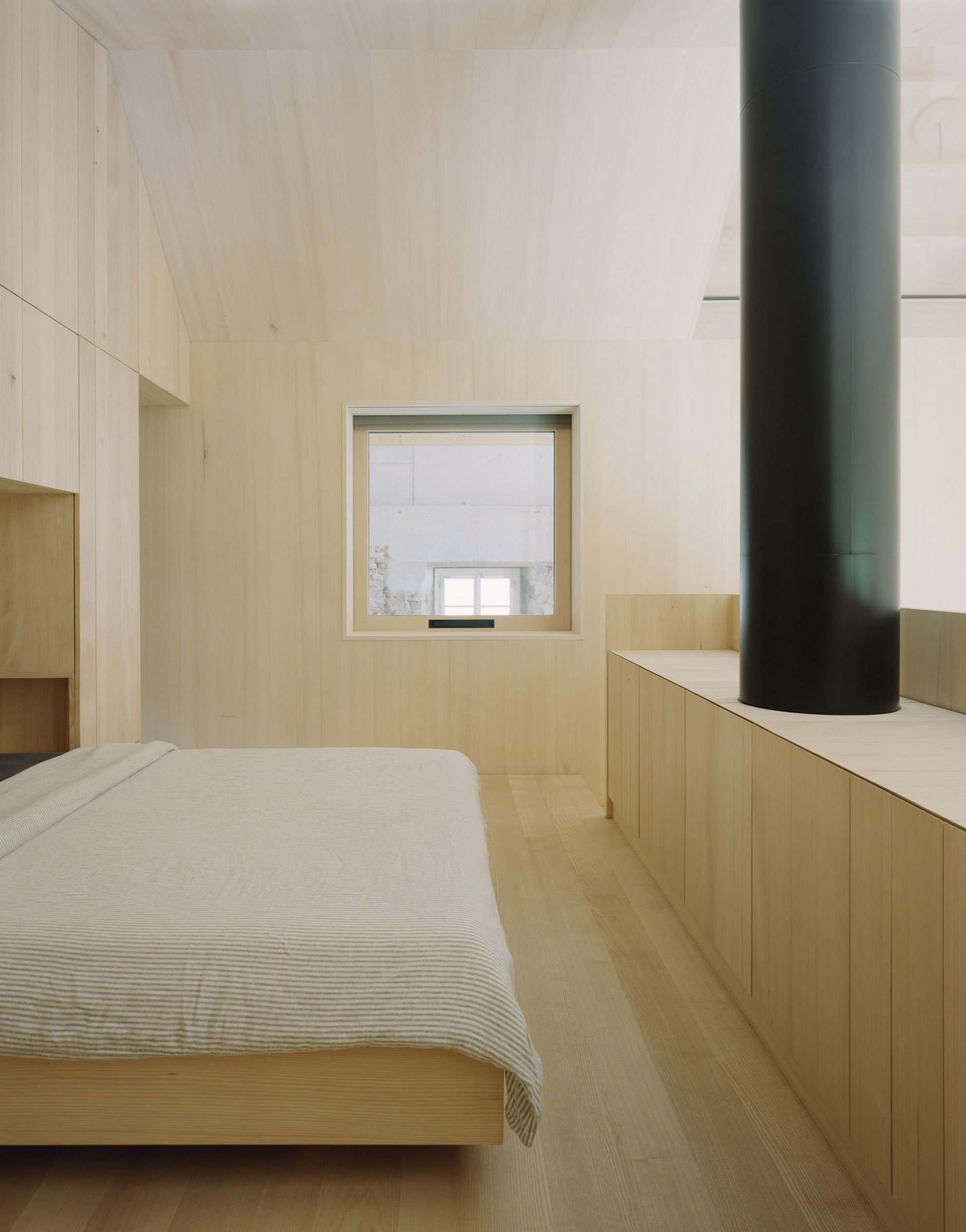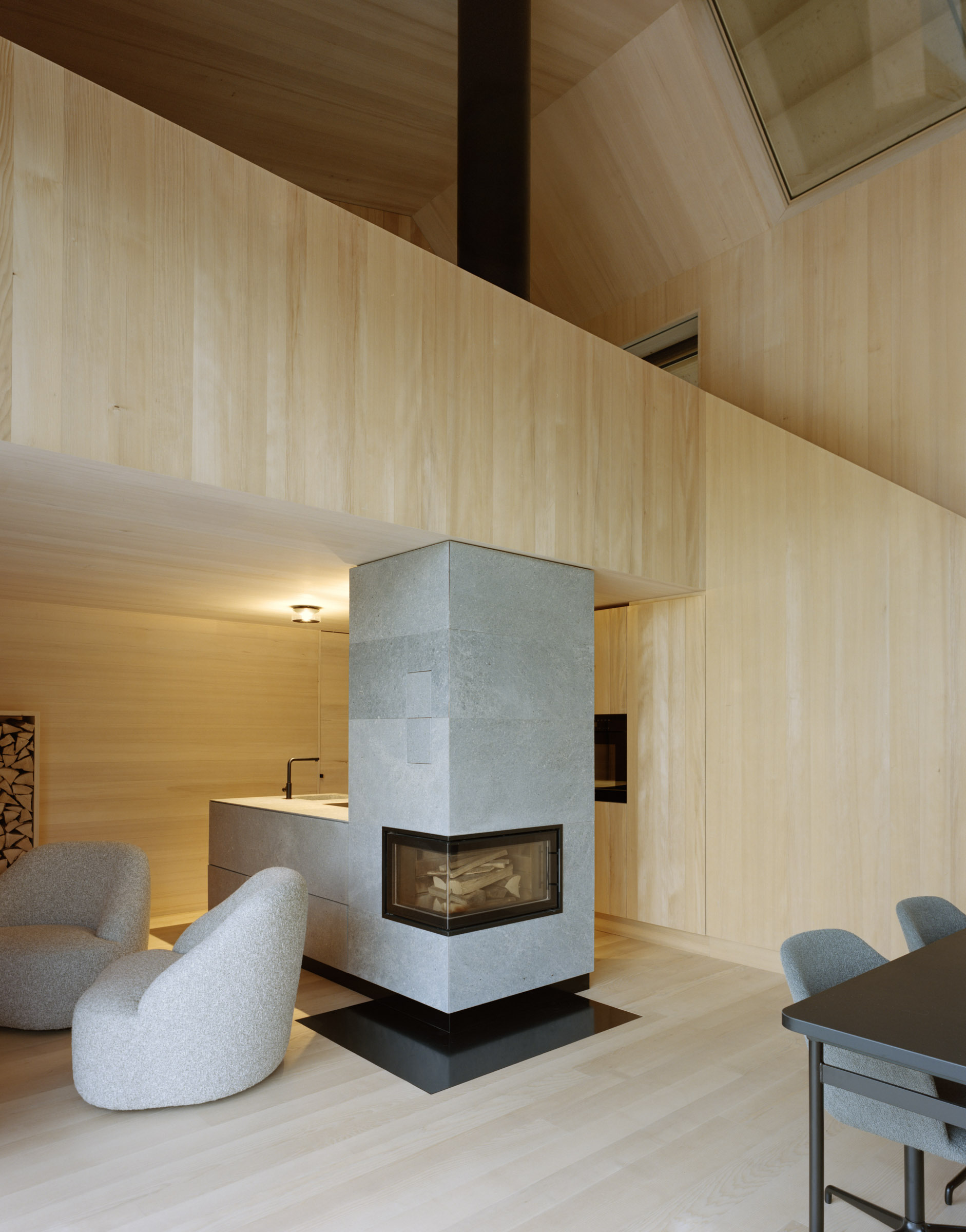 Die Architektur spielt bewusst mit der zeitlichen Differenz von Alt- und Neubau sowie mit der Offenheit künftiger Nutzungsmöglichkeiten. Der neue Wohnkörper folgt, in Kombination mit der alten Hülle, den Prinzipien der Nachhaltigkeit und des zirkulären Bauens – sowohl in Bezug auf Materialisierung als auch hinsichtlich Energie und Technik.