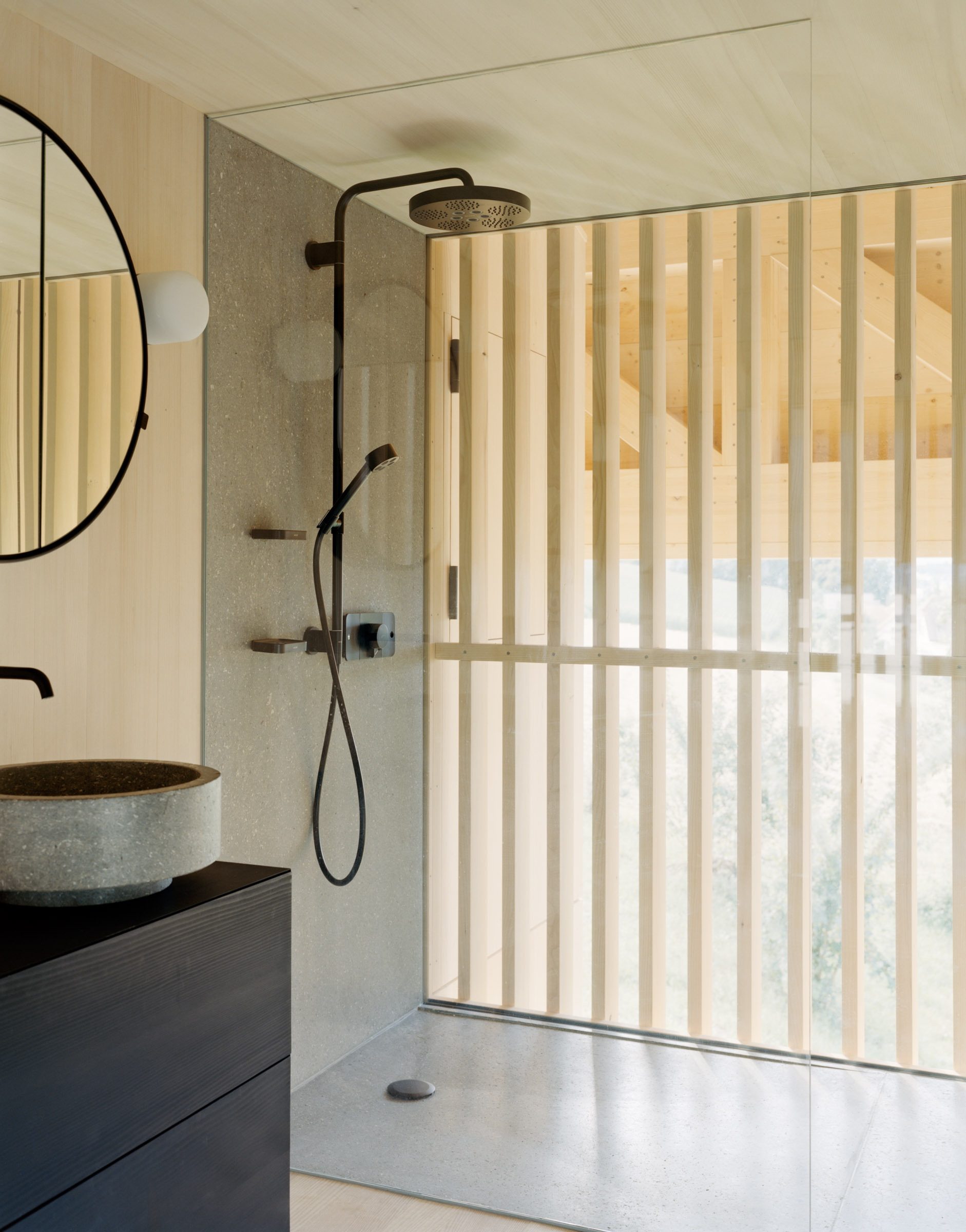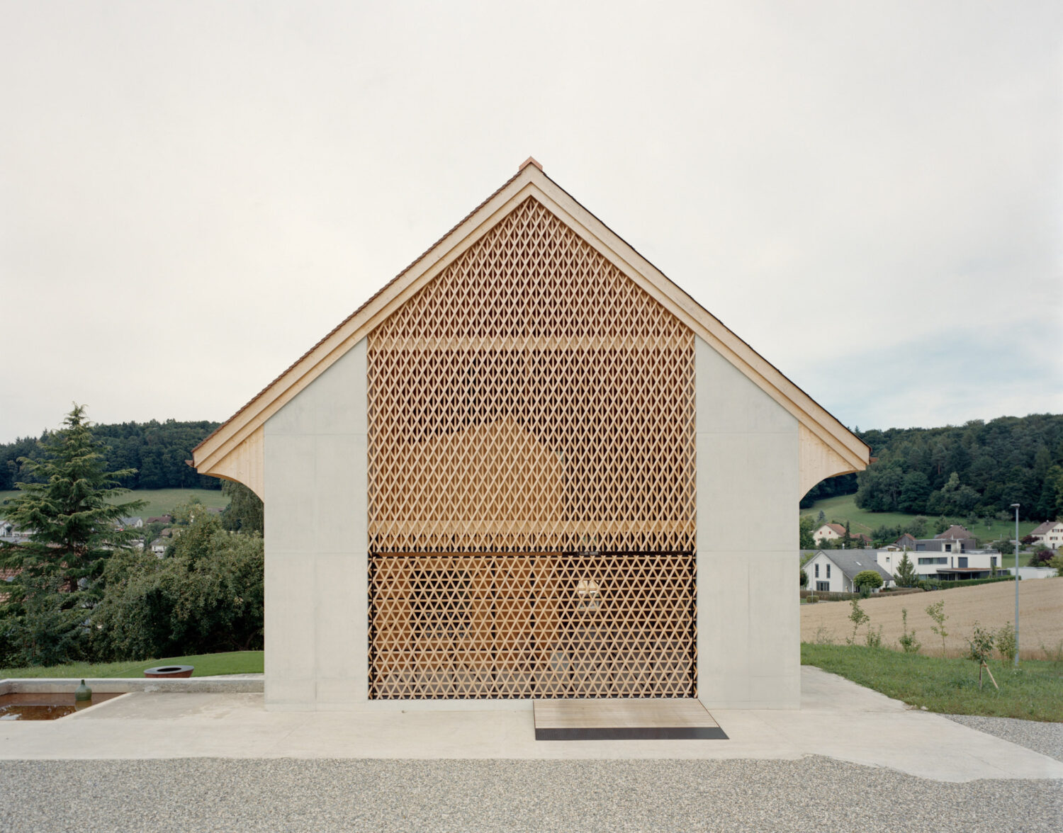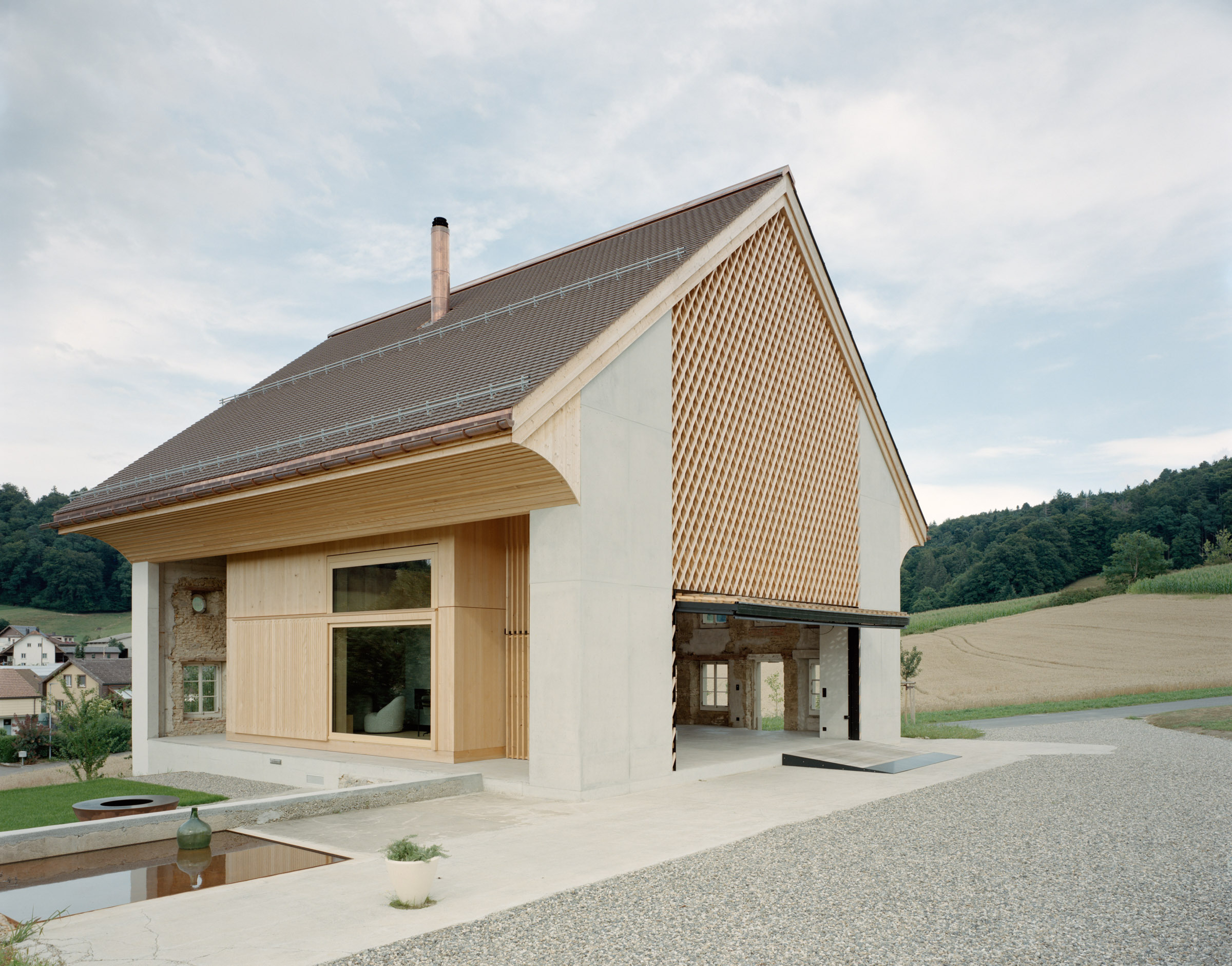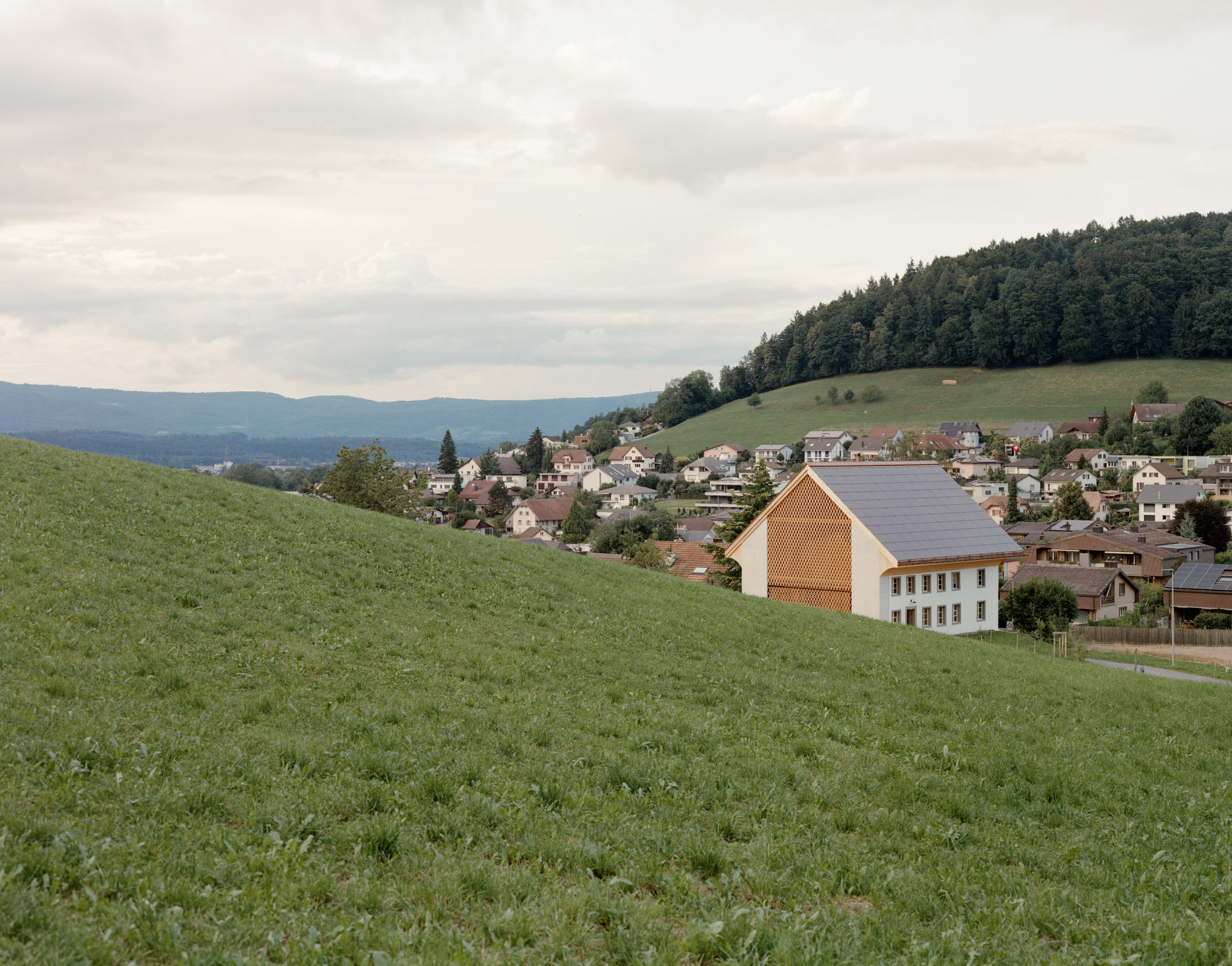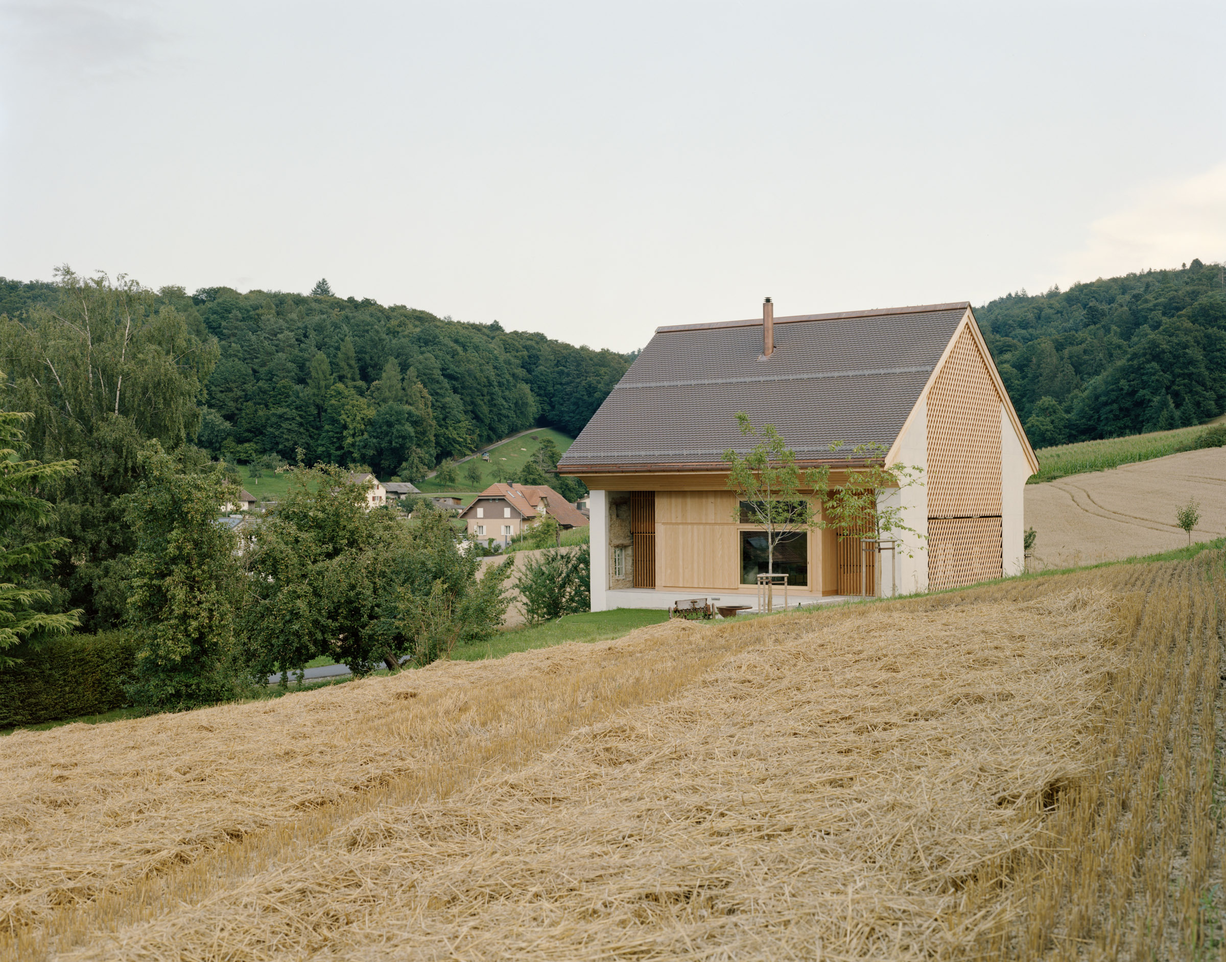 Das bestehende Bauernhaus aus dem Jahr 1851 bleibt als eigenständiges Wohngebäude im Landschaftsraum bestehen – ausserhalb der neuzeitlichen Siedlungen. Die ehemalige Stallscheune wird abgebrochen und in der Umgebungsgestaltung thematisiert (Motiv Baumgarten).