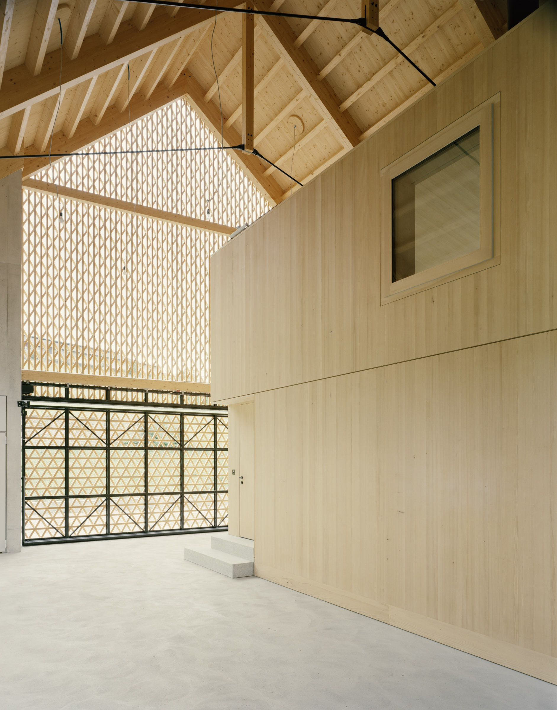 Die Halle entspricht dem Typus des Unterstands: luftdurchlässig und offen. Angestrebt wird eine weitgehend autarke Wohnform, ausgelegt auf einen ganzjährigen Komfort für zwei Personen bei normaler Nutzung.