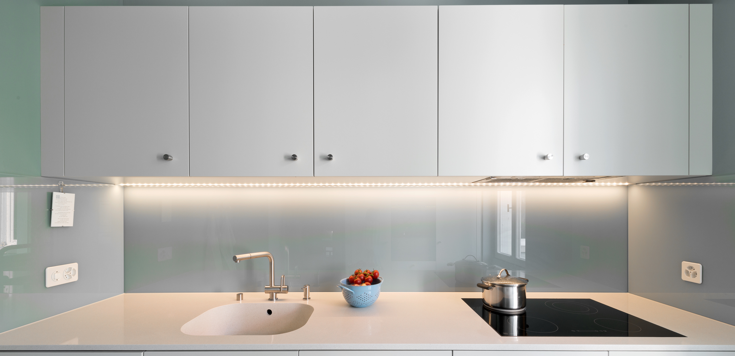 Die Stadtvilla aus dem Anfang des letzten Jahrhunderts glänzte mit einer architektonischen Liebe zum Detail. Bloss waren viele dieser Ausprägungen im Laufe der Jahre verloren gegangen. Wir haben sie wieder aufgespürt, wie zum Beispiel die alten Bodenbeläge, zurück an die Oberfläche geholt und subtil aufgefrischt. Verändert haben wir nur wenig, dies aber wirkungsvoll. So stellen wir neue Einbauten wie Küche, Bad und Schrankelemente bewusst als zeitgemässe Manufakturen in den Dialog mit dem Bestand. Und um die Raumwirkung noch zu verstärken, haben wir für die Wände mineralische Farben verwendet.